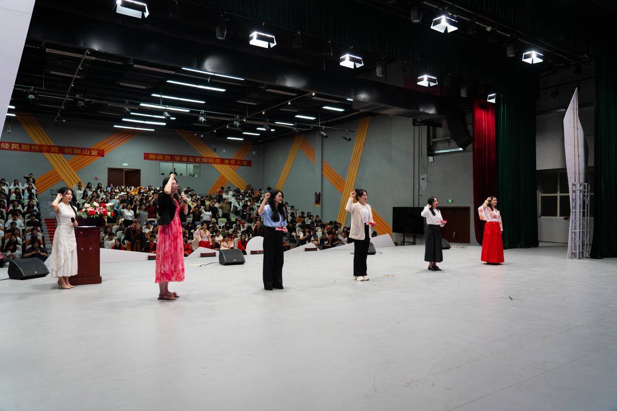 学生节目和合唱校歌《放飞梦想》将整场活动推向了高潮。学生们通过朗诵韩愈的《师说》表达了对老师们的敬意和对未来的美好憧憬。他们的声音激昂而深情,诉说着对老师们无尽的感激和敬仰。同时,学生们还合唱了校歌《放飞梦想》,用歌声传递着对学校的热爱和对未来的期待。