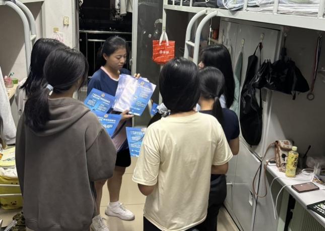 为进一步提高入党积极分子的思想政治觉悟,培养为人民服务的意识,经济贸易学院党总支组织第43期入党积极分子培训班学员开展社会实践活动。近年来,电信诈骗案件频频发生,诈骗手段多样,令人防不胜防。2024年11月12日,经贸学院党总支组织入党积极分子深入大一新生宿舍,开展防诈骗宣传活动,以提高同学们的防诈意识和自我保护意识,为校园安全建设贡献力量。