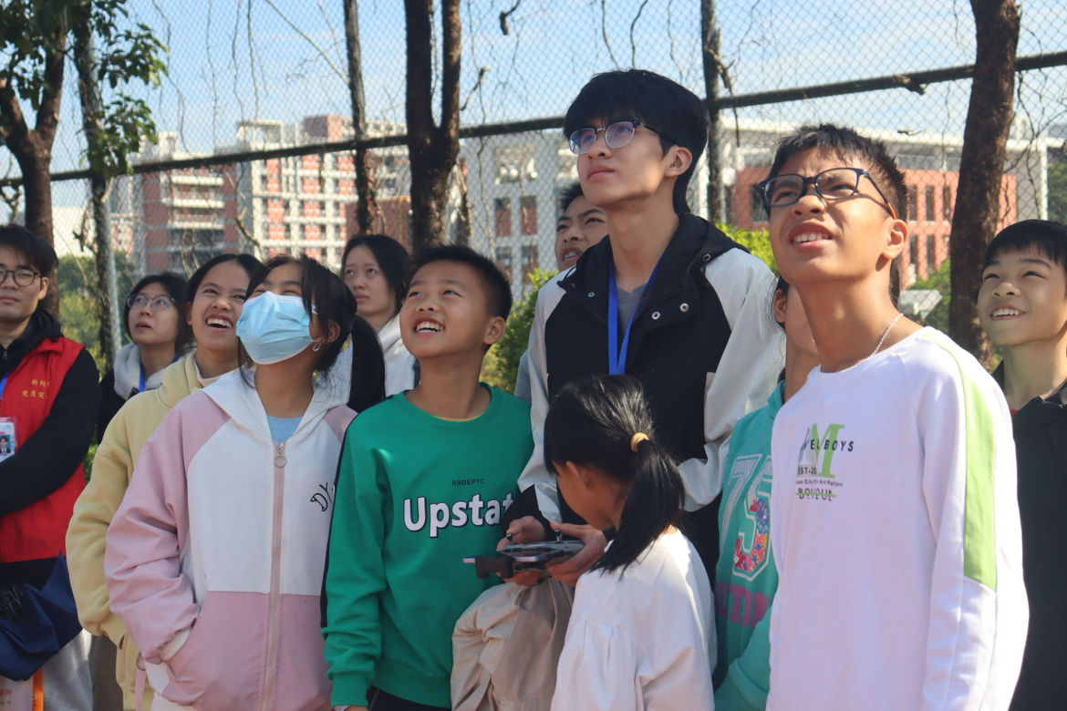 无人机体验环节将活动气氛推向高潮。在空旷的操场上,志愿者们带领孩子们体验无人机操控。他们逐一指导孩子们如何握遥控器、操作按钮,控制无人机起飞、降落、悬停和转向。志愿者们还鼓励孩子们发挥想象力,尝试让无人机完成特定任务,培养孩子们的实践能力、空间思维和应变能力。