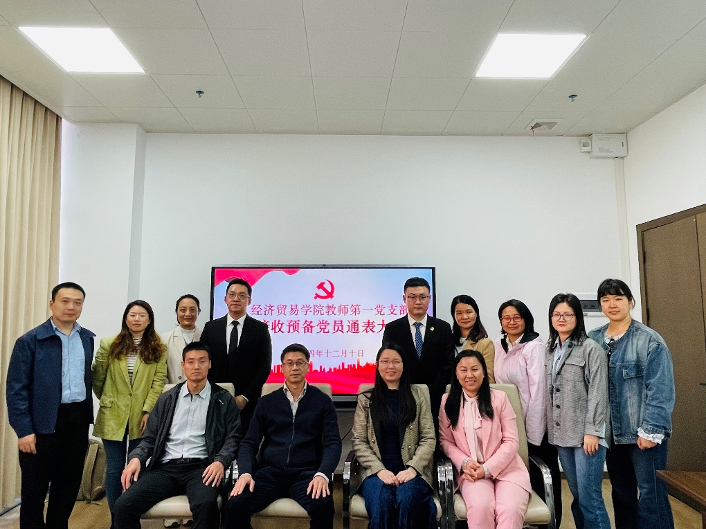 2024年12月10日,经济贸易学院教师第一党支部在白云校区博学楼610室召开接收预备党员大会。经济贸易学院党总支书记李繁、院长蒋晶、党总支副书记龚云以及教师第一党支部全体党员共同参加了会议,会议由党支部书记廖晓虹同志主持。