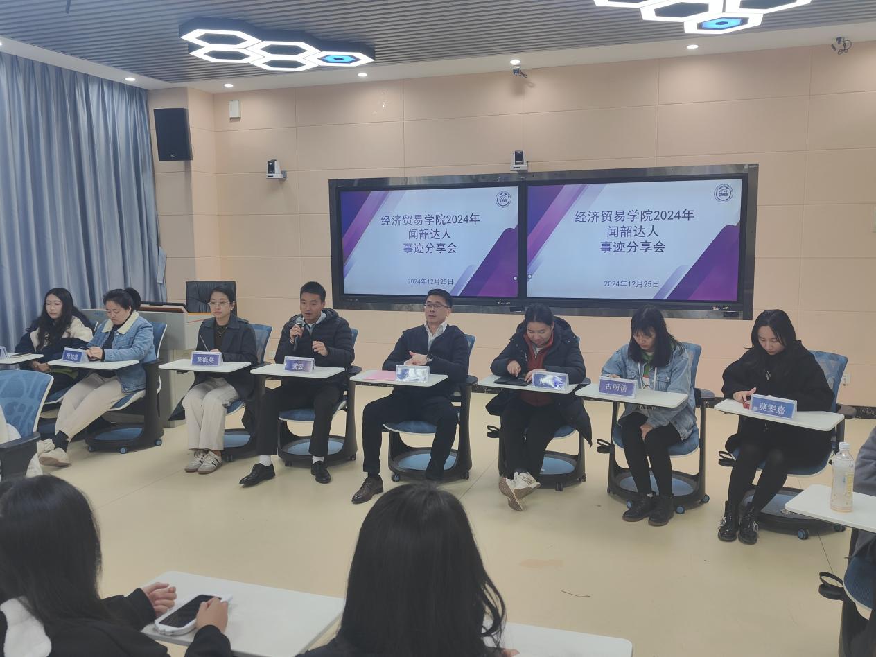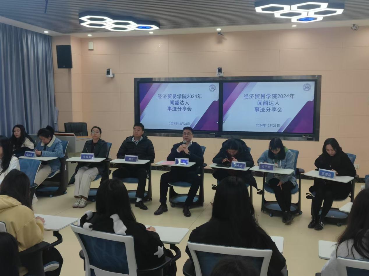 为深入学习贯彻党的二十届三中全会精神,引领经济贸易学院学子凝心聚力、奋发进取,充分发挥优秀学子的示范引领作用,激发广大学生的学习热情,提高我院学生的学习能力,营造良好的学习氛围,12月25日上午,经济贸易学院在明德楼1区316成功举办了2024年“闻韶达人”事迹分享会。经济贸易学院党总支书记李繁、党总支副书记龚云、学工办主任黄小奇,以及全体辅导员老师参加本次活动。