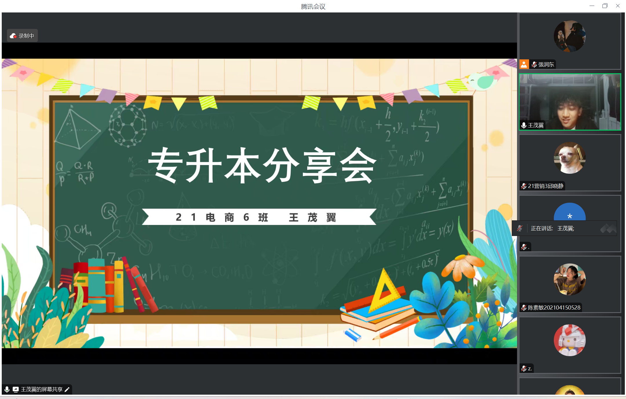 为深入学习贯彻党的二十届三中全会精神,进一步推进“一站式”学生社区建设,树立优秀朋辈榜样,引导同学们树立升学的信心,激发学习积极性,营造良好学风。2024年12月25日晚上,经济贸易学院举办专插本经验线上分享会。经济贸易学院辅导员陶智祥、2024届升学的优秀毕业生及各年级学生代表参加活动。