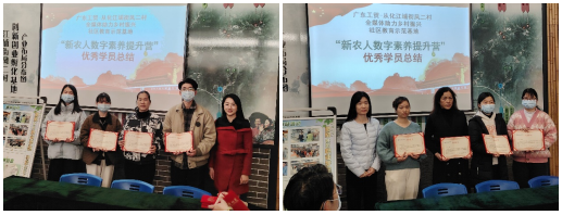 结业典礼上,主持人黄诗媛老师代表广东工贸,向经过认真学习、顺利结业的各位学员表示了热烈的祝贺,同时,也向关心和支持本次提升营的各位领导、老师以及凤二村委表示了衷心的感谢。张莉副教授对本次培训课程进行了总结,对学员们在培训期间的刻苦学习和积极表现给予了高度评价,并鼓励学员们将所学知识运用到实际工作中,为推动凤二村的数字化发展贡献力量。优秀学员覃凤珍女士针对本次提升营的学习进行了心得体会分享和总结,对广东工贸的精心组织和老师们的精彩授课表示感谢,认为此次培训为凤二村培养了一批具备数字素养的新农人,为乡村振兴注入了新动力。最后,教师们共同为结业学员颁发了结业证书,并为优秀学员颁发了荣誉证书。
