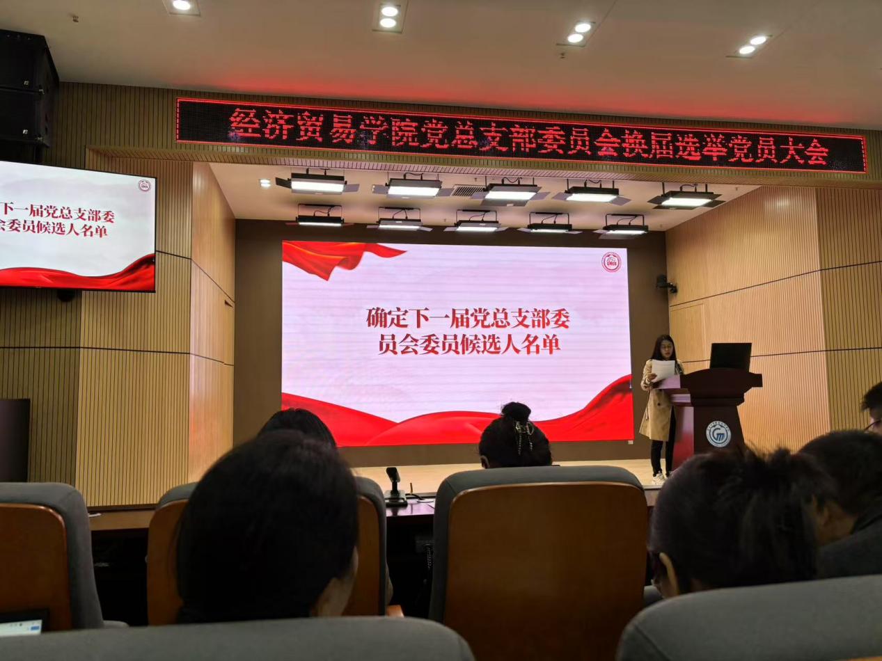 会议通过了经济贸易学院党总支换届选举办法、委员候选人名单和监票人、计票人名单,并通过差额选举和无记名投票的方式,选举产生了新一届党总支部委员会。
