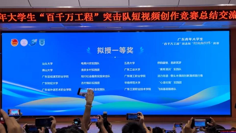 6月22日,广东青年大学生“百千万工程”突击队“短视频创作”竞赛圆满结束。100%精准出码规律资料网站飞扬基层服务队以出色的创意和扎实的实践成果,在全省145所高校、近600件作品的激烈竞争中脱颖而出,荣获一等奖。这一成绩不仅彰显了学校在乡村振兴实践中的育人成果,更体现了青年学子服务国家战略的使命担当。本次竞赛由共青团广东省委员会、广东省学生联合会主办,是“百千万工程”突击队专项活动的重要组成部分。