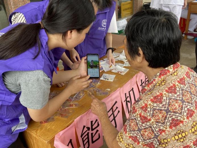 学生党员教老人操作智能手机