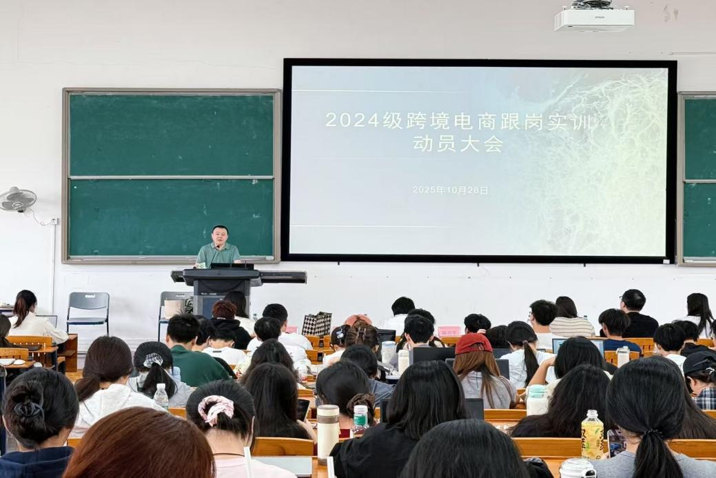10月28日,经济贸易学院2024级跨境电商跟岗实训启动仪式在明德楼举行。经济贸易学院副院长甘朝阳、跨境电商专业全体教师及广州万维视景科技有限公司总经理陈兴军等嘉宾共同出席,开启学生实战实训新征程。