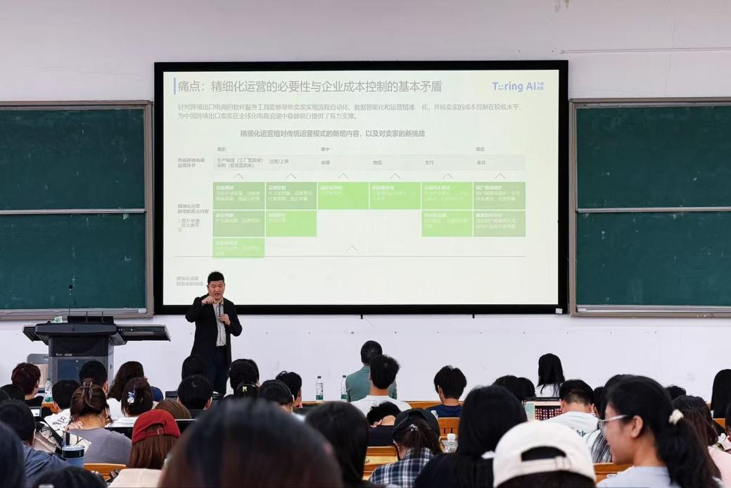 企业分享环节,陈兴军总经理聚焦“AI与跨境电商的融合发展”,解析了AI对行业岗位的重塑。他指出,他指出,AI已深度渗透营销、运营等核心环节,并强调掌握“技术+业务”复合能力是未来人才的核心竞争力