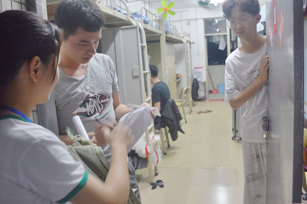 当晚7点,小青们准时在东区图书馆楼前集合,准备分组对东西区宿舍进行“扫楼”宣传。此次参与人员共18人,东西区共6栋楼——分别是东1—4、西1-2,每栋安排3人。此次宣传活动,旨在提醒有意向捐赠衣物的同学事先做好准备,方便次日晚上小青们上门回收。