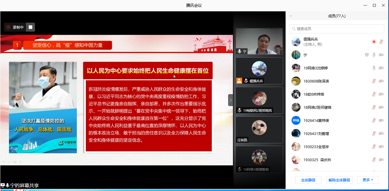 7月20日下午4点,计算机与信息工程学院党总支书记张宁同志线上为计算机学院党总支第34期入党积极分子党课培训班学员讲授了一堂以“疫情下的中国大学生的价值选择和使命担当”为专题的党课。