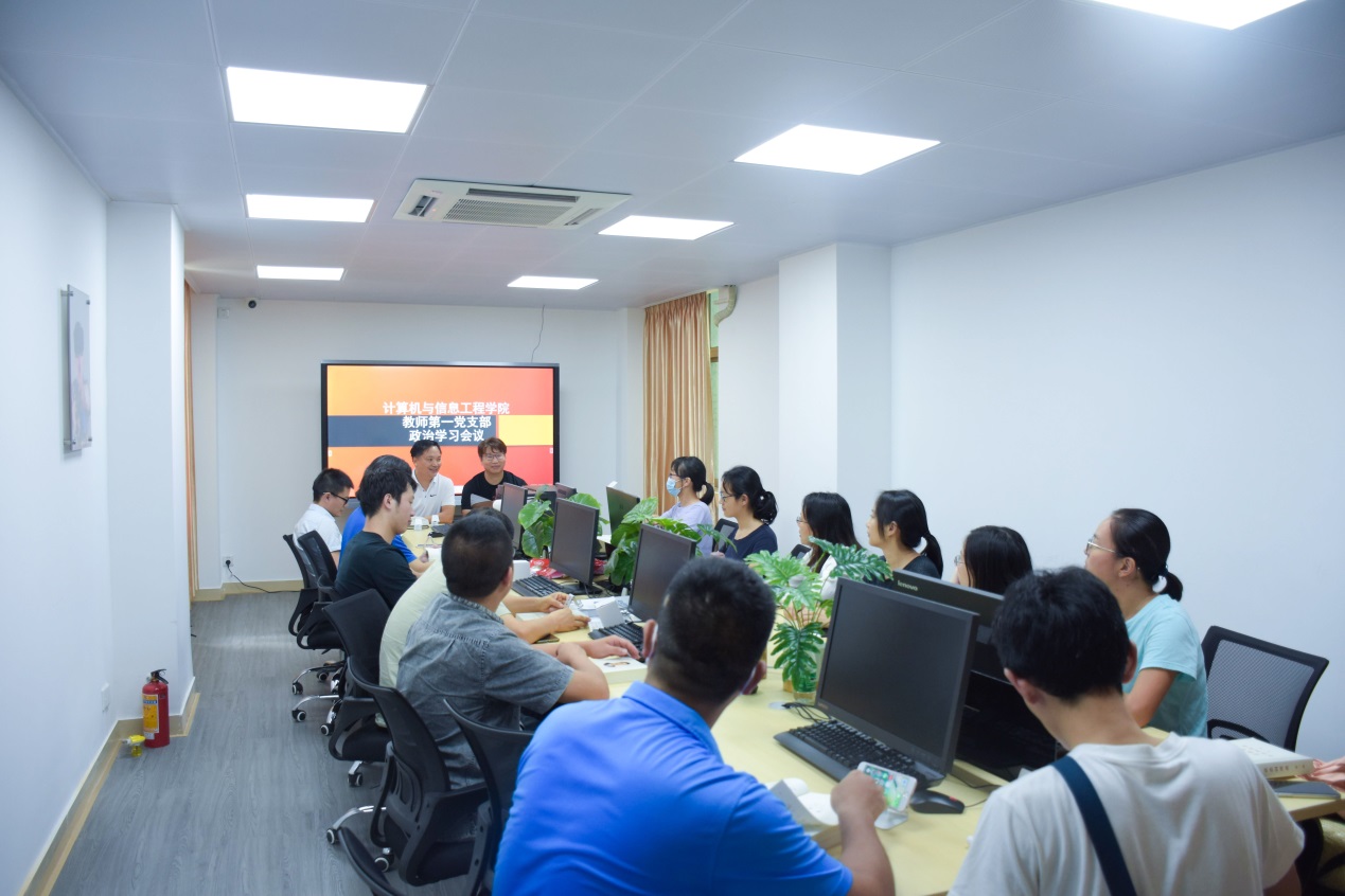 计算机学院党总支书记张宁分别在教师第一、第二支部学习会上做了发言,张书记除了分享自己的学习体会,还传达了学校党委对做好国庆假期安全工作的有关要求,一是疫情防控常态化,假期外出要做好新冠病毒的防控,避免去疫情风险地区出行;二是要求广大教工党员在国庆假期间贯彻落实好维护校园安全工作。