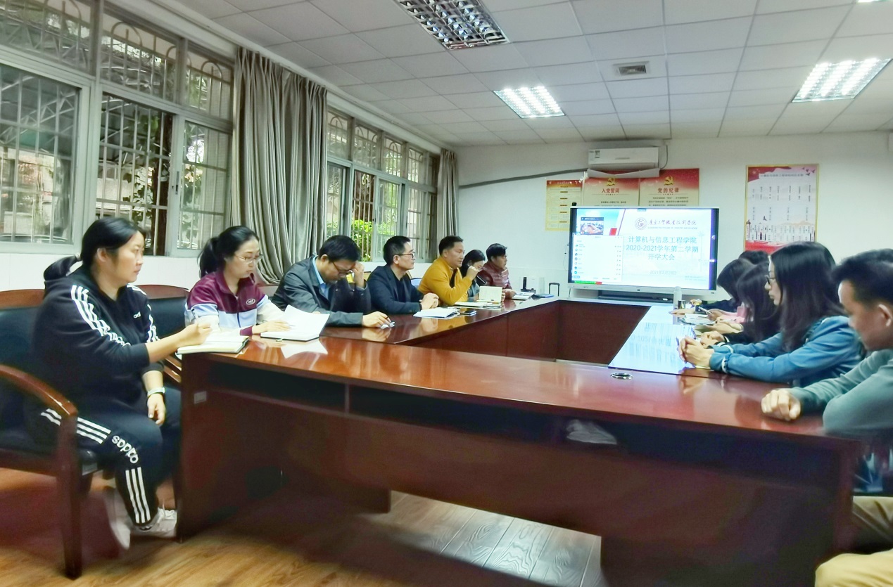 最后,院长余棉水对学院上学期工作进行了回顾,学院圆满完成各项教学任务,也取得了一些成绩,但学院在发展的过程中仍存在一些问题,尤其是师资队伍、教学条件、激励机制等方面需要完善。同时,余棉水就新学期的工作内容,做了细致的部署,他强调,2021年是学校双高院校及创新强校工程建设的重要年,计算机学院将紧紧围绕学校发展大局及学校“十四五”规划,结合本学院的实际情况,以特色高水平高职院校和高水平专业建设的标准严格要求,提升学院整体教育教学水平,确保学校双高院校建设及创新强校工程的顺利完成。