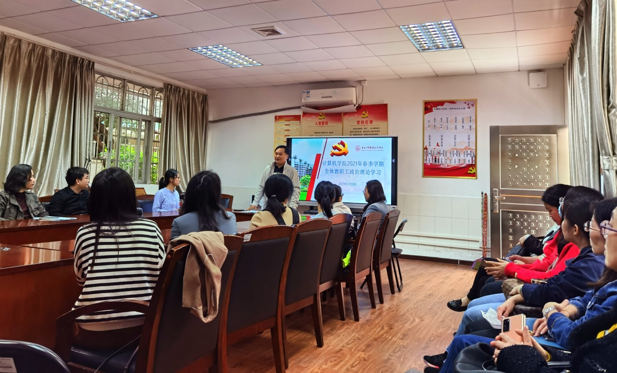 3月9日,计算机学院组织全体教职工在教学楼104开展2021年春季学期政治理论学习,会议由张宁书记主持。