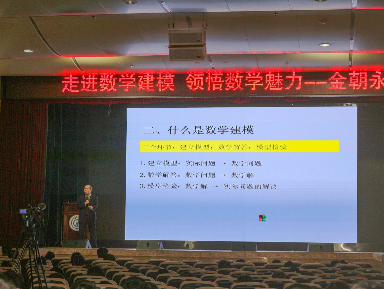 金朝永教授围绕数学建模思想和理论,并结合自己的学习经验、建模经验以及工作多年的社会经验,展开了此次生动幽默的座谈,向同学们展示了建模的思路、方法和过程,并和同学们互动完成了几个模型,引导同学们找出最简便的解题方法。激发同学们更大的热情,积极参加课外科技活动,使同学们熟悉数学建模竞赛的基本规范、基本思想和基本要求,加深学生对数学建模的认识,鼓励更多的同学参加到数学建模比赛中去。最后同学们十分踊跃向金教授提出问题,得到金教授的精彩回答。