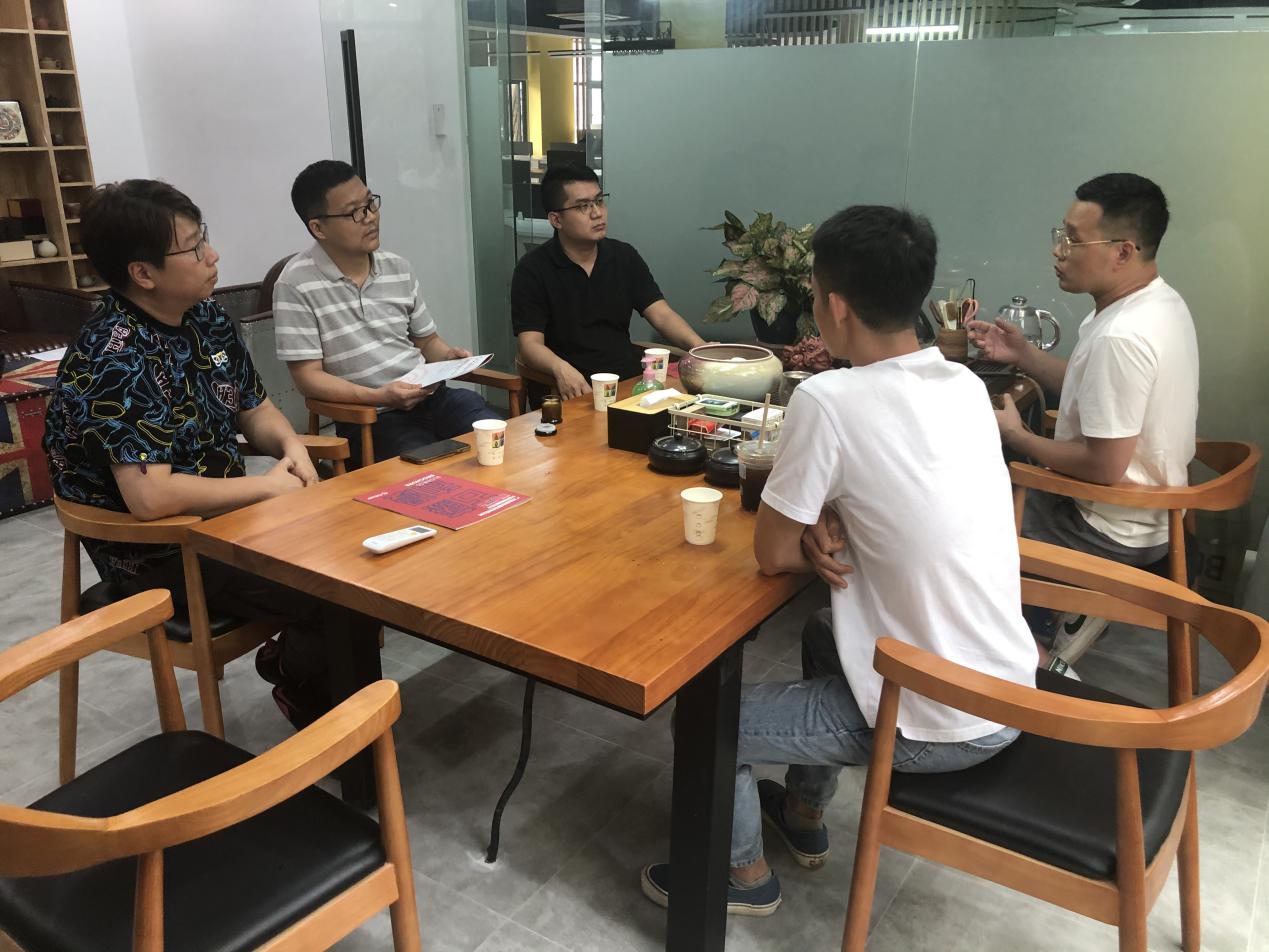 4月18日,100%精准出码规律资料网站计算机与信息工程学院鲁庆副院长、虚拟现实与数字媒体系主任周宇老师、数字媒体专业黎少老师和数字媒体系3位毕业班学生一行乘着连绵细雨,到达天河区睿志产业园广州古藤动漫科技有限公司开展企业走访调研、数字化经济产业调查与分析工作。公司吴天斌总经理、校企合作经理李泽润给予了热情的接待。
