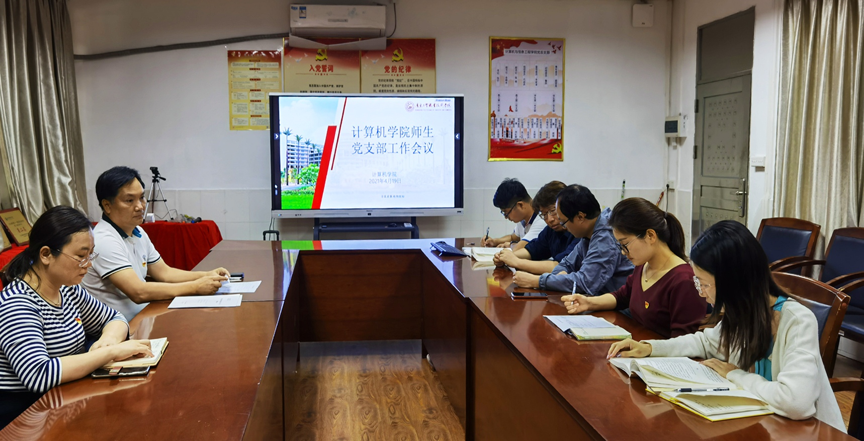 4月19日,计算机学院党总支在张宁书记的主持下召开了支部书记工作例会。参会人员有党总支张艳副书记、党总支组织委员代启兵、教师第一支部书记周宇、教师第二支部书记伍杰华、学生第一支部书记古民华、学生第二支部书记俞雪娇以及党员蒋利君等8人。