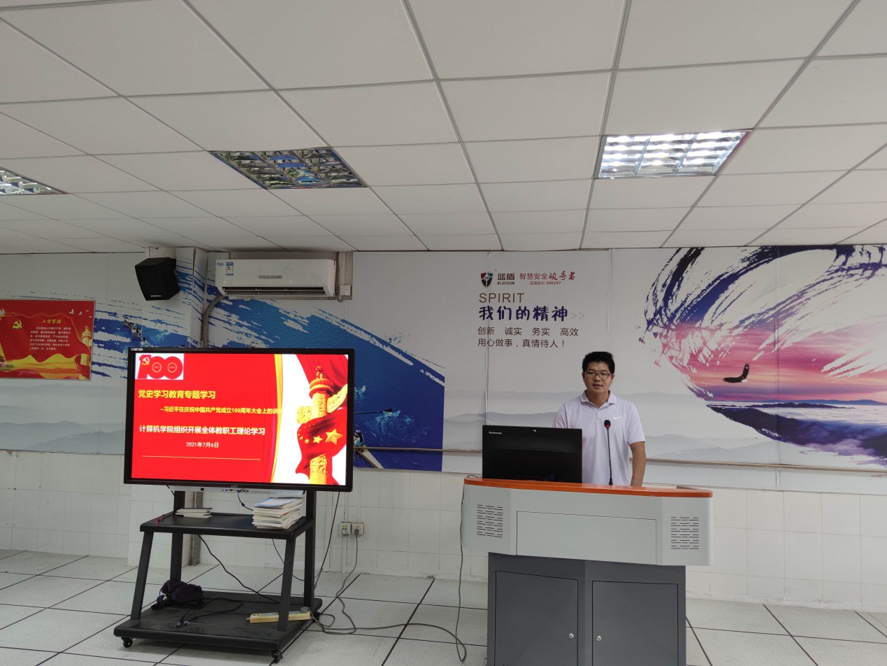 7月6日下午,计算机与信息工程学院党总支组织全体教职工学习习近平总书记在庆祝中国共产党成立100周年大会上的重要讲话精神,学院全体教职工参加,会议由学院党总支书记张宁主持。
