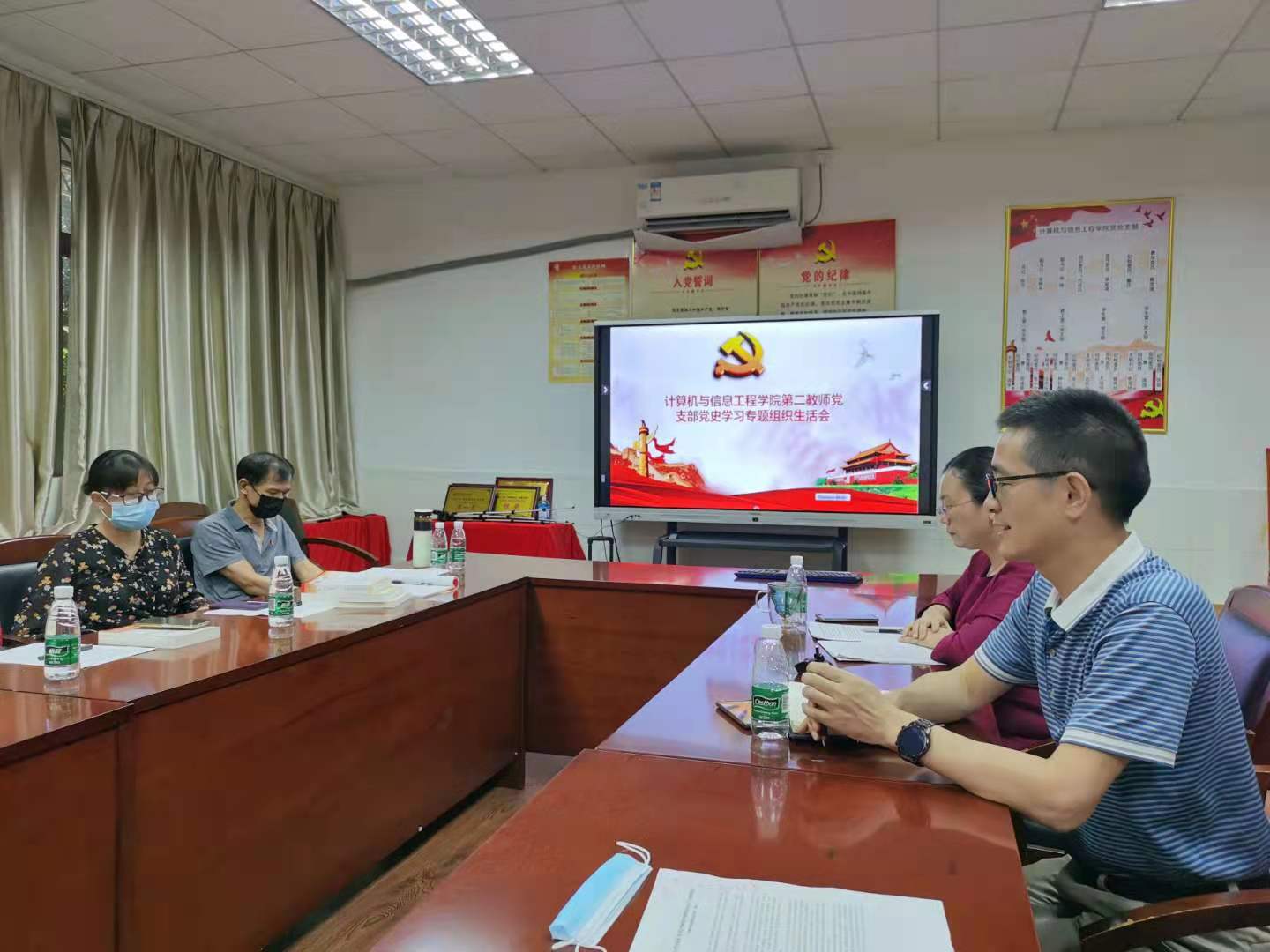 2021年7月8日,计算机与信息工程学院教师第二党支部在学院党员活动室召开了党史学习教育专题组织生活会,支部全体党员参加了会议。