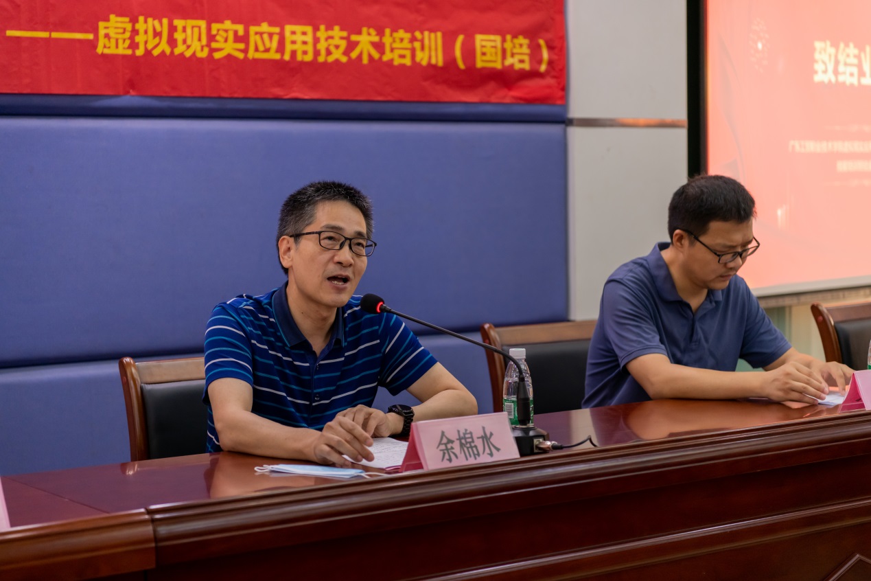 结业典礼上,余棉水在致闭幕词中说,经过20天紧张而有序的培训,学员们学有所获,希望全体学员把这次培训的收获应用于以后的教学工作之中,要把这次培训的新理念、新方法带给没能来参加培训的同志,要把VR/AR产业发展的先进经验应用到工作当中。
