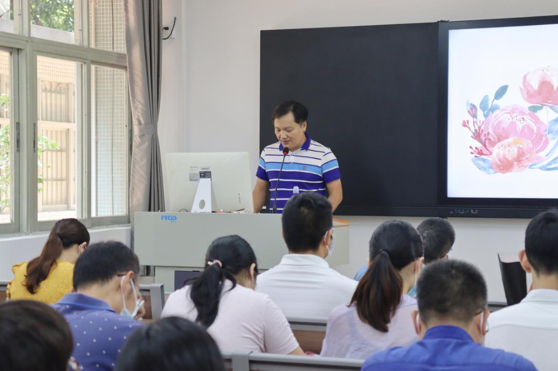 庆祝大会由计算机学院党总支张宁书记主持。张宁书记首先向全体教师送上节日问候并致以崇高敬意。他表示步入新学年,学校正在规划“十四五”规划的新蓝图,致力于推动教育事业高质量新的发展,师资队伍不断加强,计算机学院教师大家庭又多了10 多张新面孔,为学院的发展壮大带来了生机和活力。随后,计算机学院余棉水院长上台宣读了有关表彰文件,他对获奖的教师表示祝贺,并号召大家向他们学习,继续争先创优。