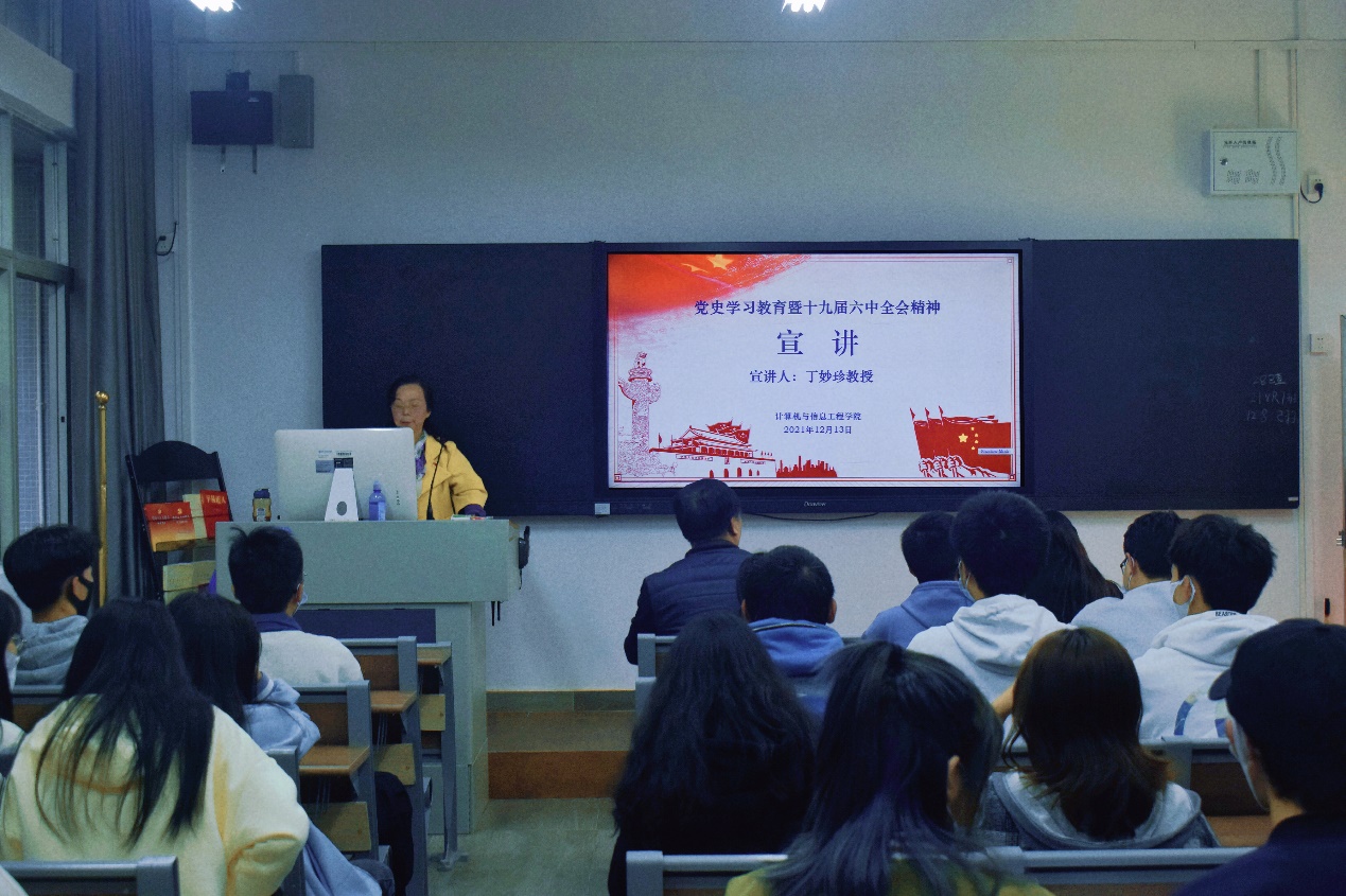 12月13日下午,学校党史教育宣讲团丁妙珍教授来计算机与信息工程学院做党的十九届六中全会精神专题宣讲报告。计算机学院党总支书记张宁主持宣讲会,计算机学院师生代表参加。
