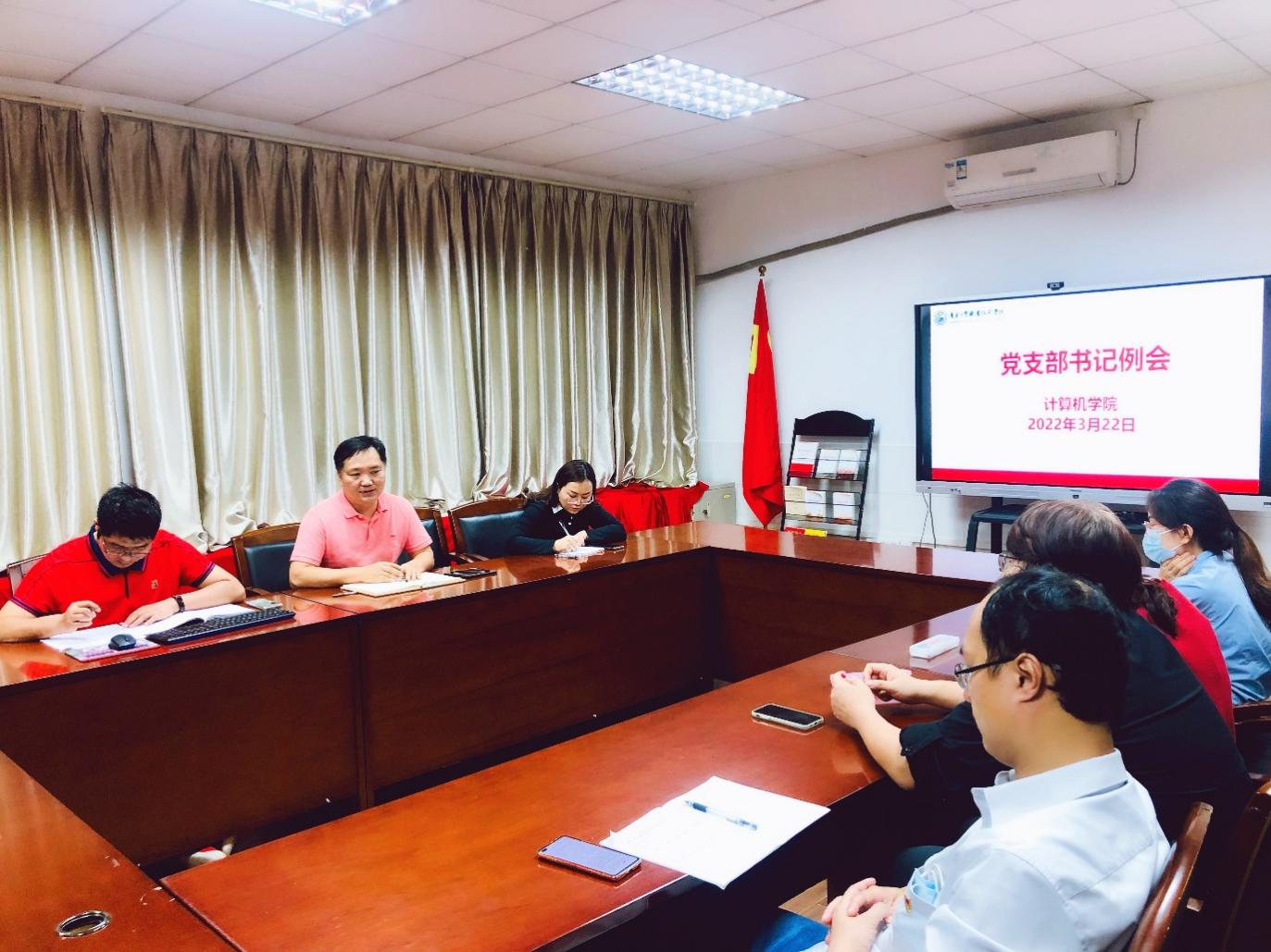 2022年3月22日,计算机与信息工程学院党总支召开2022年春季开学第一次师生党支部书记会议,学院党总支书记张宁、副书记张艳、党总支组织委员代启兵以及4个师生党支部书记等参加了会议,会议由张宁主持。会议认真落实第一议题制度,深入学习习近平总书记在中央党校(国家行政学院)中青年干部培训班开班式上发表的重要讲话精神,深入学习贯彻习近平总书记关于疫情防控工作的重要指示精神,传达了学校党委关于疫情防控工作的具体要求,面对目前疫情的多发态势,张宁要求各支部书记要抓紧抓实抓细常态化疫情防控,在支部里要注重引导党员师生展现教育担当,发挥先锋模范作用,在抗疫战役中做好宣传、科学防控、执行严格,同时积极投身教学、潜心学习。
