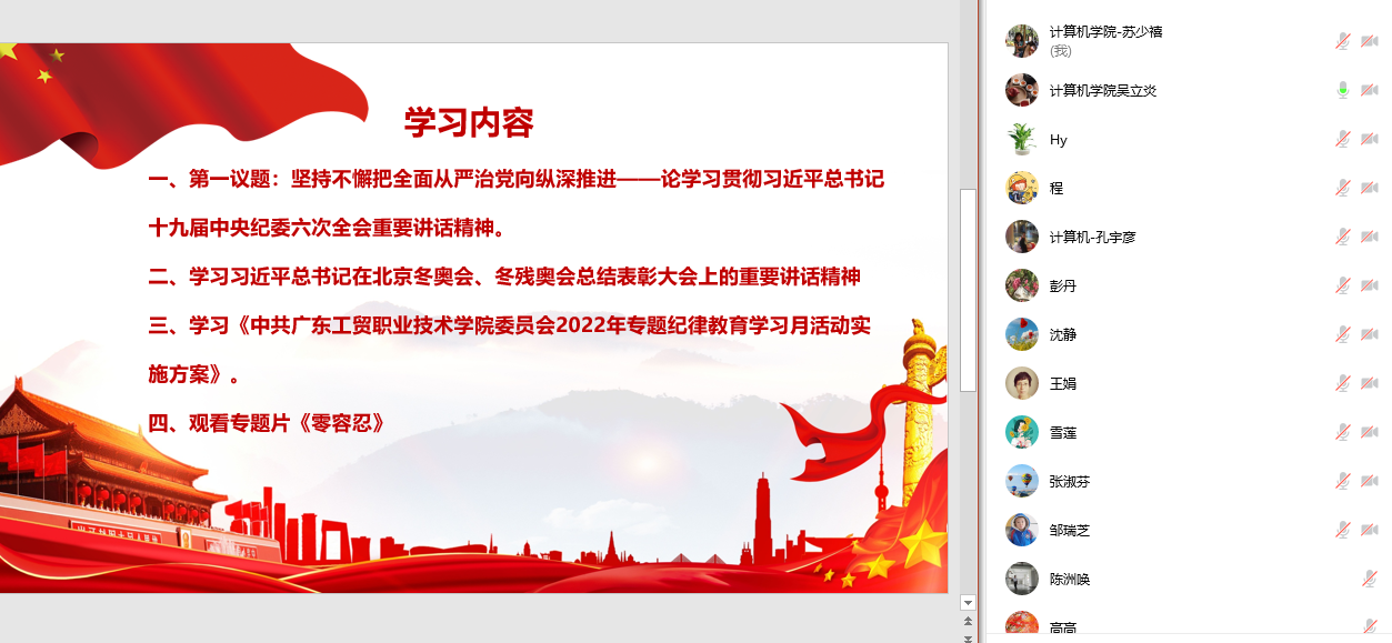 “学冬奥精神 固防腐防线”计算机学院教师第二党支部 开展纪律教育学习活动