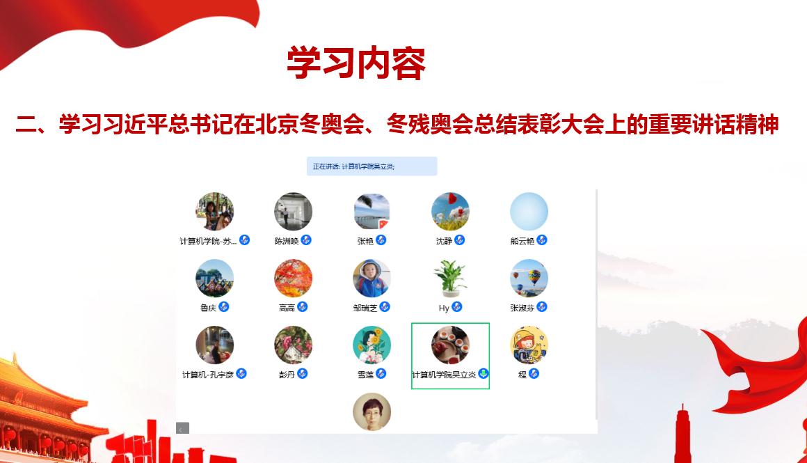 2022419日,计算机学院教师第二党支部按照学校的工作安排及党总支的要求,结合疫情防控需要,组织支部所有党员以线上的方式召开了政治学习活动。
