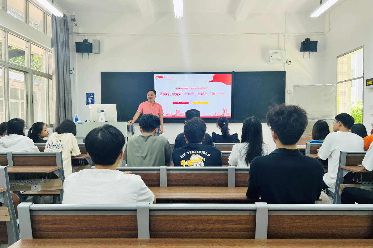 为深入学习宣传贯彻习近平新时代中国特色社会主义思想和党的十九届六中全会精神,贯彻落实习近平总书记关于青年工作的重要思想,深入学习习近平总书记在庆祝中国共产主义青年团成立100周年大会上的重要讲话精神,引导和帮助广大青年学生上好与现实相结合的“大思政课”,2022年7月8日下午,计算机与信息工程学院党总支书记张宁为将要开展暑期社会实践活动的学生们讲授一堂题目为《学党史、强信念、跟党走、勤实践》的 “思政第一课”。