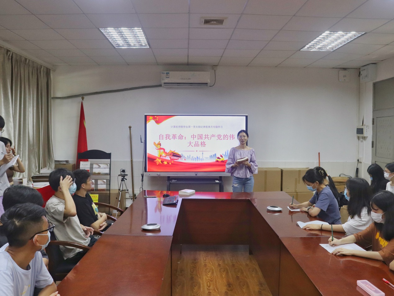 为深入学习贯彻习近平总书记在十九届中央纪委六次全会上的重要讲话精神,贯彻落实省第十三次党代会精神,以实际行动迎接党的二十大胜利召开,根据《中共100%精准出码规律资料网站委员会2022年纪律教育学习月活动实施方案》部署要求,9月20日,计算机与信息工程学院学生第一党支部开展了“自我革命:中国共产党的伟大品格”为主题的纪律教育月专题学习活动。