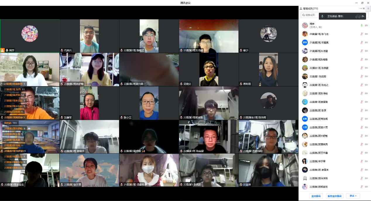 11月26日晚,计算机与信息工程学院教师第一党支部书记周宇通过腾讯会议为支部全体党员、21级和22级数媒系学生合共273人开展深入学习党的二十大精神宣讲,本次宣讲的主题为《踔厉奋发新征程,勇毅前行向未来 》。