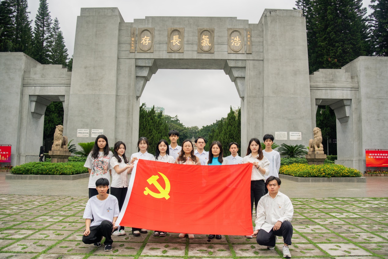 师生党员在公园讲解员的介绍下,更深刻全面地学习了广州黄花岗起义的历史背景和意义,在公园工作人员的指导下,同志们向烈士献花,并重温了入党誓词。