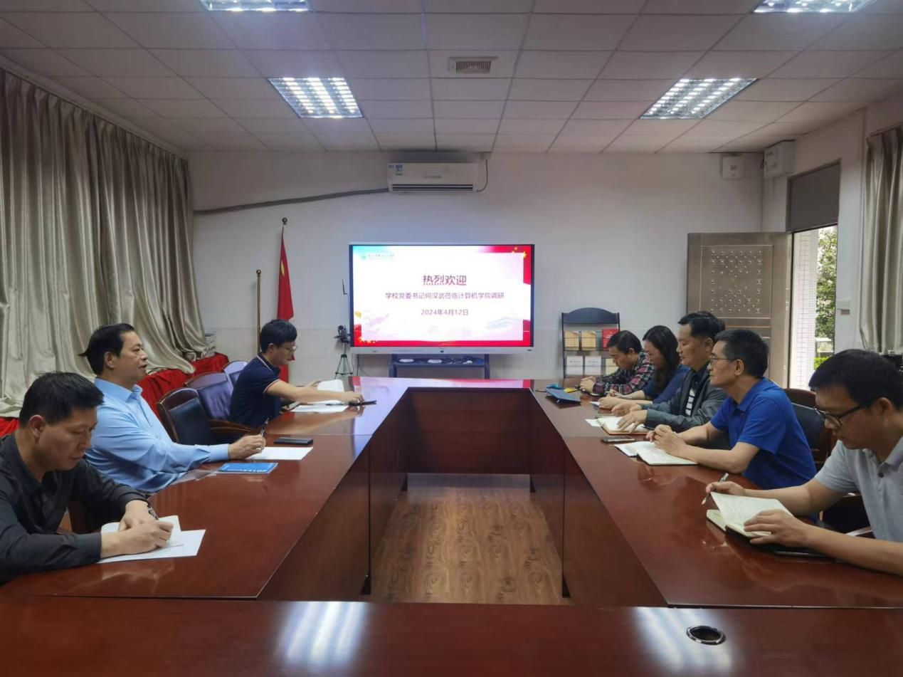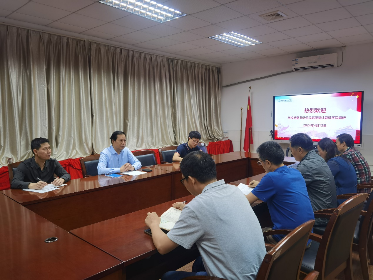 412日,学校党委书记何汉武赴计算机与信息工程学院调研指导工作,并与学院领导班子座谈交流。学校办公室主任吴浩、学生工作部部长刘建军参加调研。