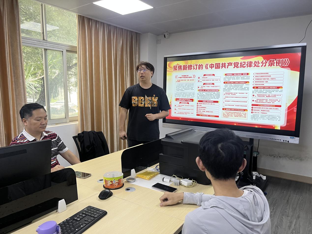 会上,支部书记周宇带领大家深入学习领会习近平总书记关于党的自我革命的重要思想,认真细致地学习了《条例》的内容,并对各位党员教师提出了要求,要求大家要把学习《条例》作为当前重要的政治任务,学深悟透,入脑入心;要学以致用,内化于心、外化于行,将铁的纪律真正转化为日常习惯和自觉遵循,以优良的党风引领教风学风。