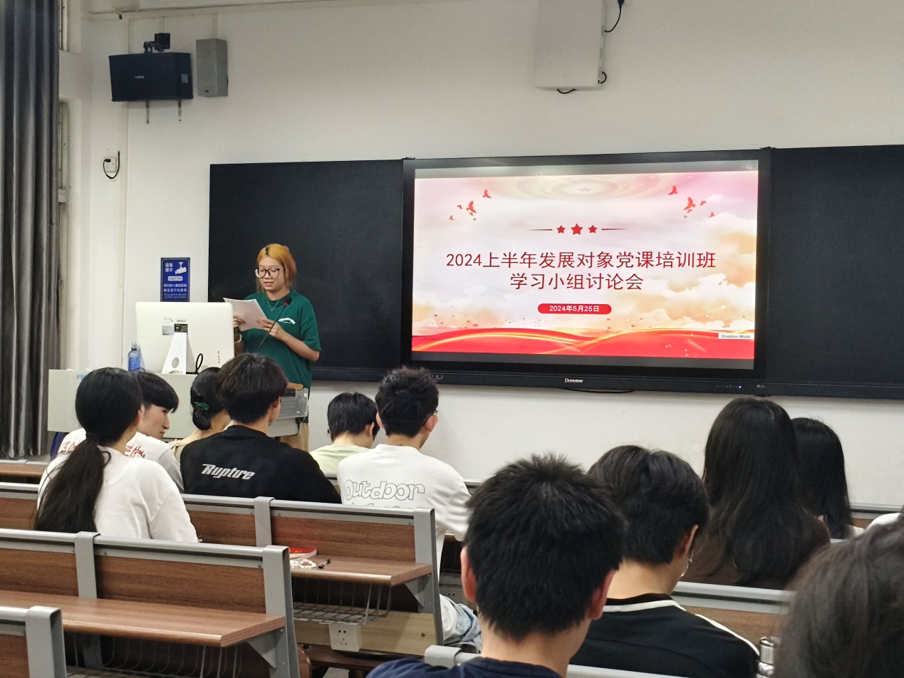 根据学校《关于举办2024年第一期发展对象党课培训班的通知》的安排,为深入学习贯彻落实党的二十大精神,进一步加深发展对象对习近平新时代中国特色社会主义思想的认识和理解,坚定共产主义理想信念,端正入党动机,2024年5月28日,计算机与信息工程学院在教学楼101召开2024年第一期发展对象培训班小组讨论会。本次小组讨论会由计算机学院学生第一党支部书记古民华主持,全体培训班发展对象参会。