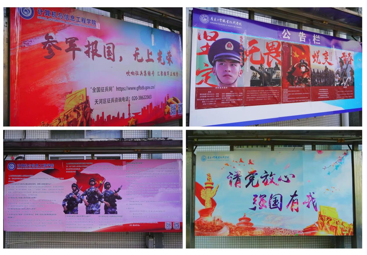 在校园内,一幅幅醒目的宣传横幅、海报引人注目,如“毕业参军正当时,携笔从戎砺青春”等,传递着参军报国的正能量。这些横幅海报不仅装点了校园,更在毕业生心中播下了参军报国的种子。