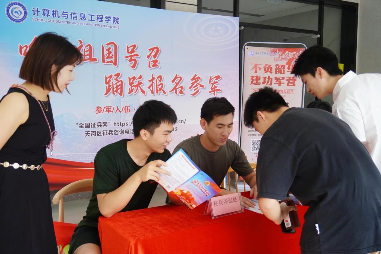 同时,学院在教学楼下设立应征入伍政策咨询站,由杨霞、苏建荣老师带领退伍军人团队,为有意向的同学们发放《征兵宣传册》,并面对面、一对一地解答同学们关于应征入伍基本条件、报名流程、优待政策、入伍发展路径等方面的疑问。鼓励青年学子积极响应祖国号召,为实现强国梦、强军梦贡献自己的力量。