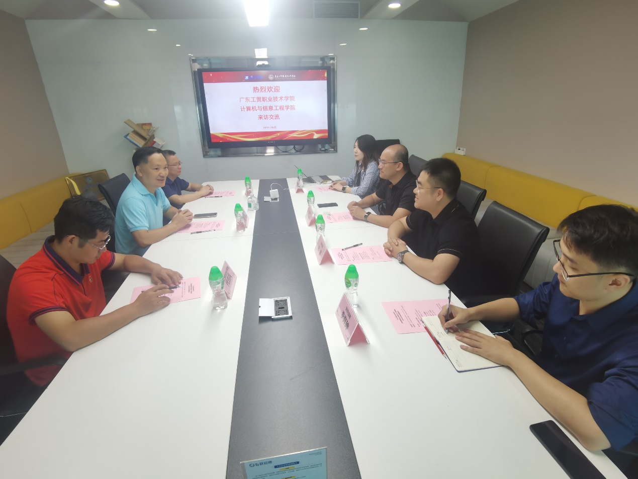 随后,开展交流会。张宁介绍了学校、学院的发展历程、专业设置、师资力量以及近年来在教育教学、科研创新和社会服务等方面取得的显著成就。特别强调了学院始终致力于培养高素质技术技能型人才,积极寻求与企业深度合作,共同探索产教融合的新模式,介绍了学院学生的整体情况及就业趋势。黄培泉介绍了学院专业建设、人才培养模式等情况。