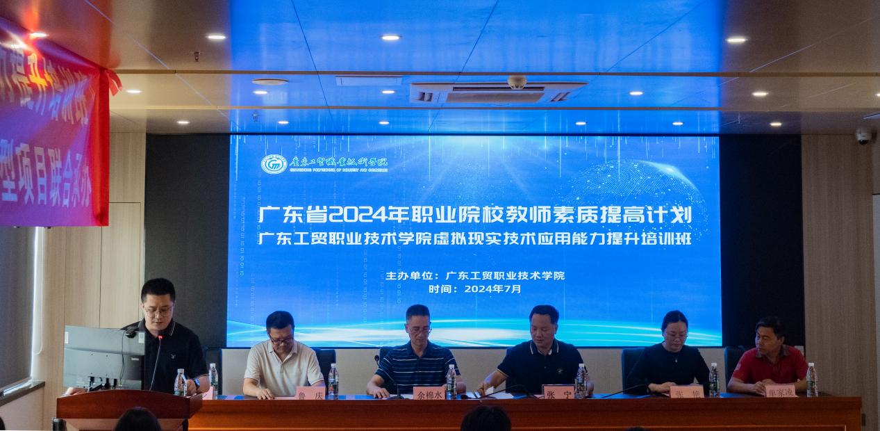 7月14日上午,广东省2024年职业院校教师素质提高计划国家级示范性(第一批)培训项目——虚拟现实技术能力提升培训班(国培)开班仪式在我校天河校区举行,参加开班仪式的有计算机与信息工程学院党总支书记张宁、院长余棉水,党总支副书记张艳、副院长单家凌、鲁庆以及部分虚拟现实与数字媒体系专业教师,同时参加开班仪式的还有来自全省23所高职院校的30位学员。