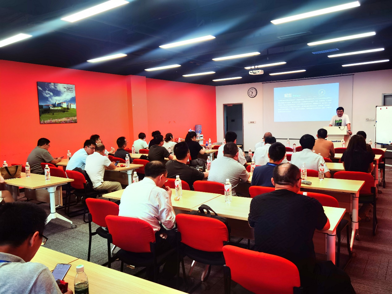 随后,东软集团技术经理杨俊为学员讲解了《数字化赋能实践-项目流程开发研讨》,基于数字化赋能和项目流程开发的一般性给大家分享知识和经验。通过实地参观和讲解,能让他们接触到更广泛的知识领域和行业信息,有助于学员掌握专业知识和技能,还能够加强他们的实践能力、创新思维和综合素质。