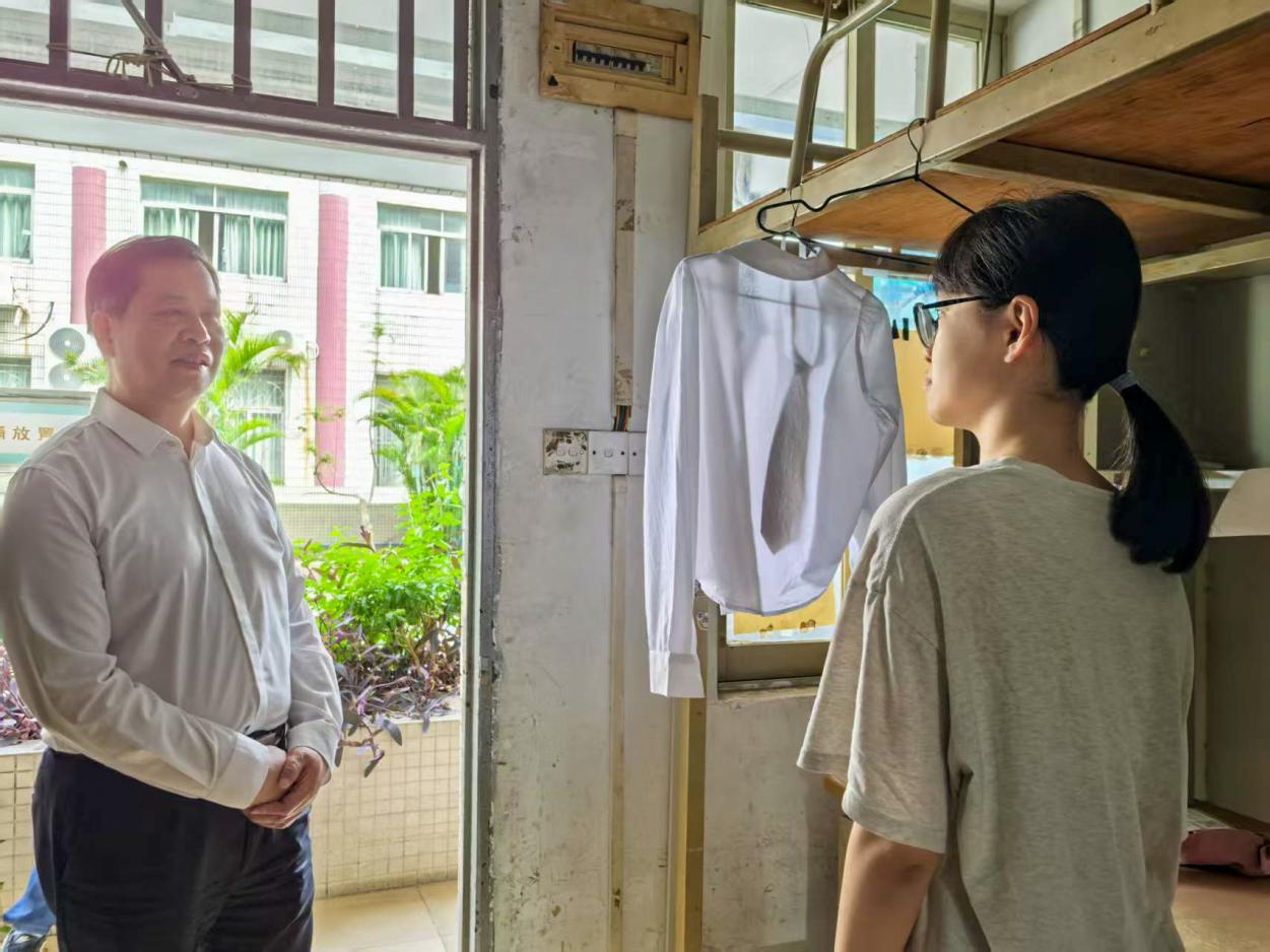 座谈会后,何汉武在计算机学院党总支书记张宁和辅导员的陪同下,走访了教学楼和学生宿舍,他指出:要进一步加强教室建设,提升宿舍文化育人功能。