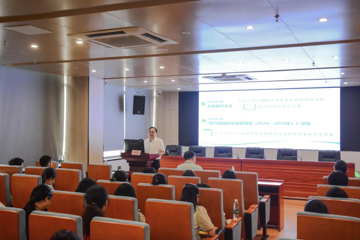 为深入学习领会习近平总书记关于建设教育强国的重要论述精神,引导师生深刻把握新时代教育发展的使命任务,6月27日我校党委副书记揭英荣以“从教育大国迈向教育强国”为题,为计算机与信息工程学院学生代表讲授思政课。