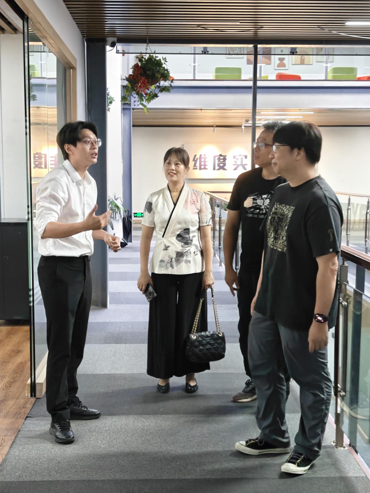 为了更好开展虚拟现实技术及数字媒体技术专业的创新实践班,深化校企协同育人,为学生提供优质就业通道。2025年7月11日,我校计算机与信息工程学院周宇副院长带领数媒系教师吴晓文、董莺赴维度次元(广州)信息科技有限公司开展实习巡查交流,实地走访企业工作场景,调研学生实习成效,并围绕产教融合深化议题与企业展开务实沟通。