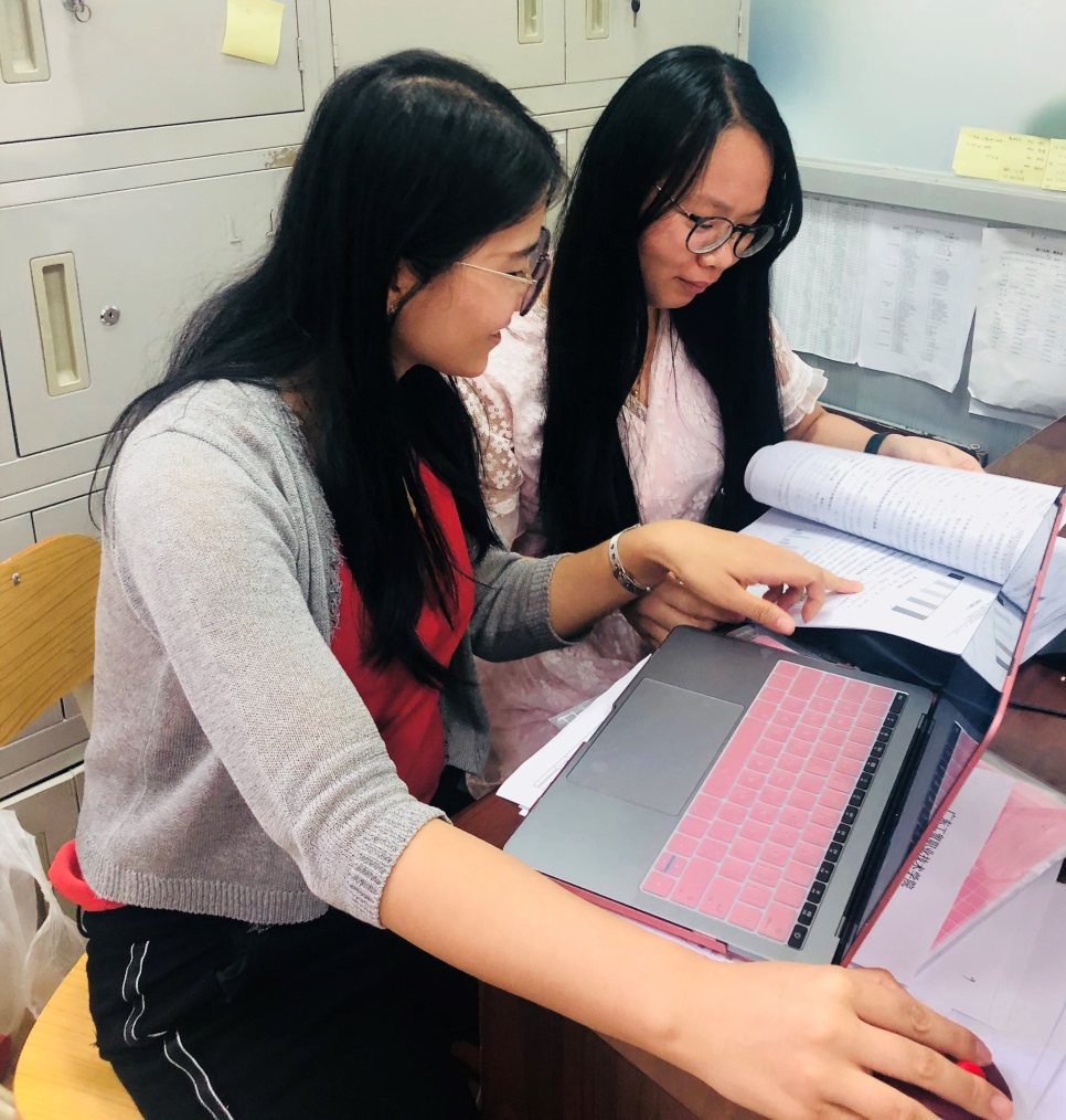 图1 与荔湾校区的王丽丽老师商讨新增专业申报材料