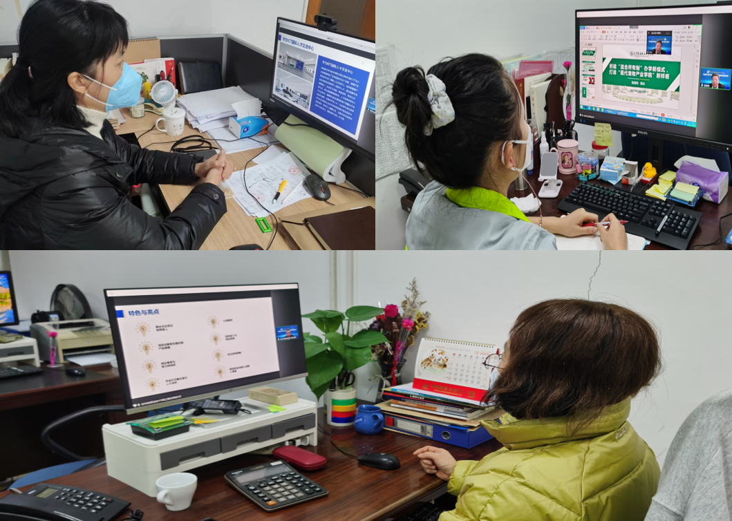 12月20日,全国职业高等院校校长联席会议在线上召开2022年年会,教育部职业教育与成人教育司副司长林宇、全国职业高等院校校长联席会议主席董刚等领导在线出席了大会开幕式。会议围绕中国式现代化建设,推进职业教育协同创新,交流展示高职教育改革创新、服务发展的经验成果,推动高职教育高质量发展。教务处组织部门全体人员全程观看会议直播。因疫情的影响,大部分人员带病居家观看了直播。