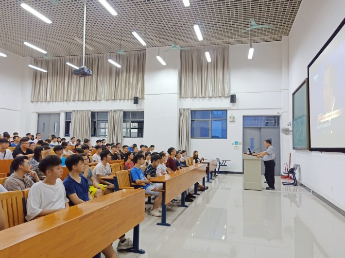首先,邵超城同志给大家播放火箭“心脏”焊接人高凤林的事迹视频,告诉大家每一个平凡的岗位都能践行工匠精神,希望工匠精神能在全体同学心中形成一种共识,并培育精益求精,严谨,专注、敬业的工匠精神。课堂上他还列举了往届参加全国各类技术类比赛的师兄师姐们,并分享自己的所见所闻,内容生动,形式多样。