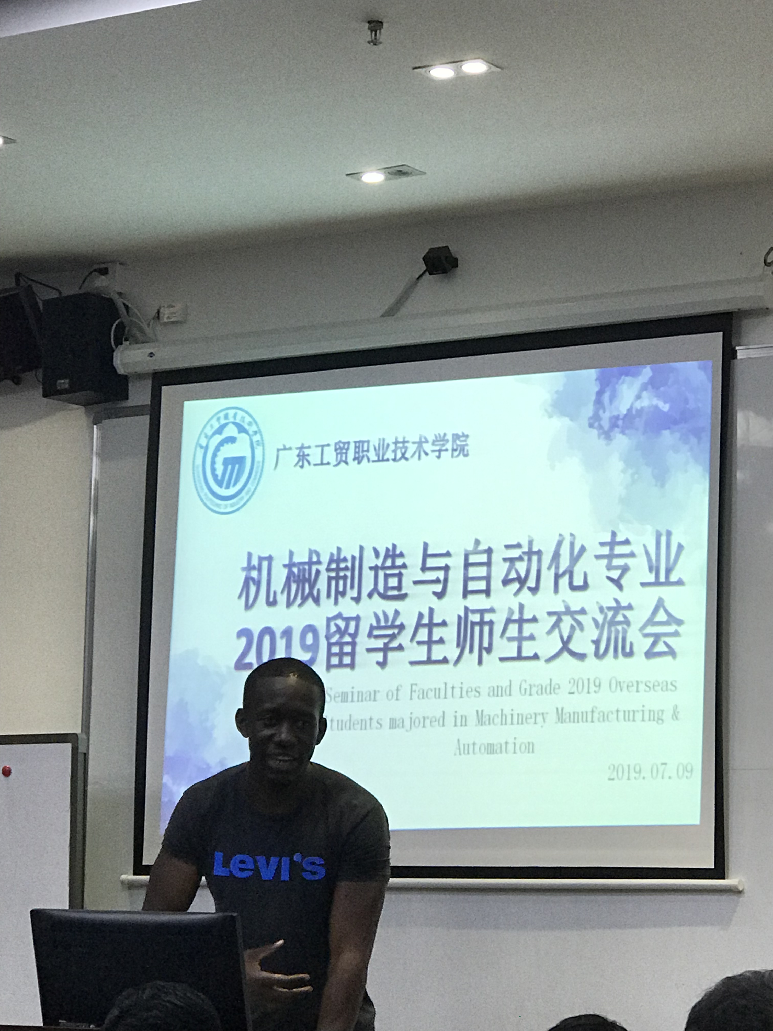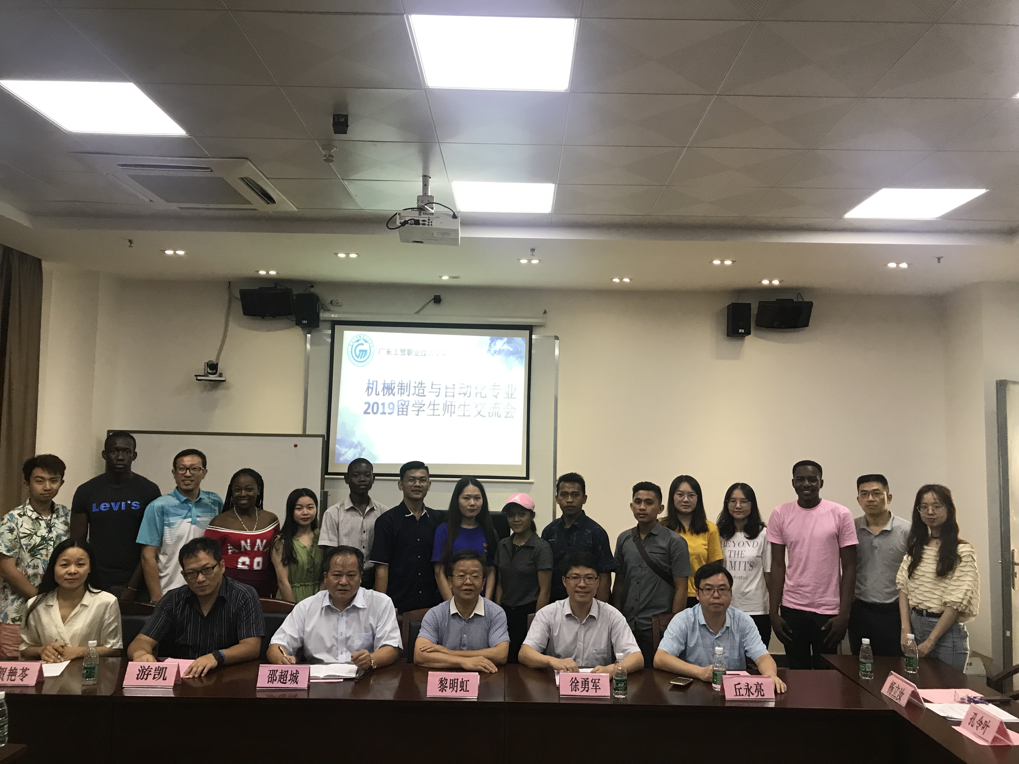 2019年7月9日上午,在学校对外交流合作处黎明虹处长、杨立汝老师的协助下,机电工程学院党总支书记邵超城、院长徐勇军、副院长丘永亮、游凯,机械制造与自动化专业带头人贺艳苓、留学生班主任孔令叶、分管辅导员以及机械制造与自动化专业的师生,与来自印度尼西亚和赞比亚的8名留学生,相聚白云校区,成功举行了留学生师生交流会。