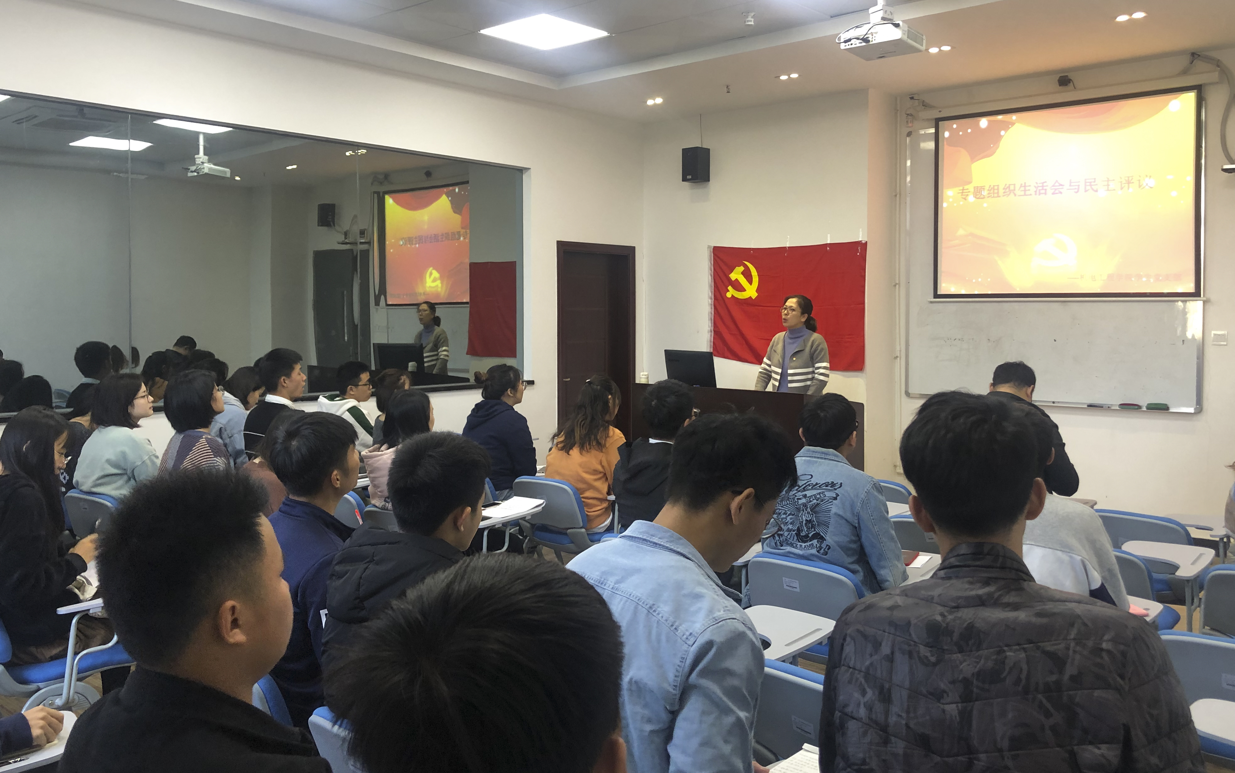 本次会议由史旭同志主持。会议第一个议程是进行专题组织生活会——批评与自我批评,史旭同志带头剖析了作为学生党支部书记以来,思想上及意识中的各种变化,以及对本学期的各项工作安排进行总结。之后,各位党员依次上台发言,实事求是地对自己思想、工作、生活情况进行总结,对照标准,肯定成绩,找出差距,明确努力方向。会议第二个议程是民主测评,与会党员通过自评、互评进行了评议,支部委员会将根据测评结果,结合支委评议确定等次。