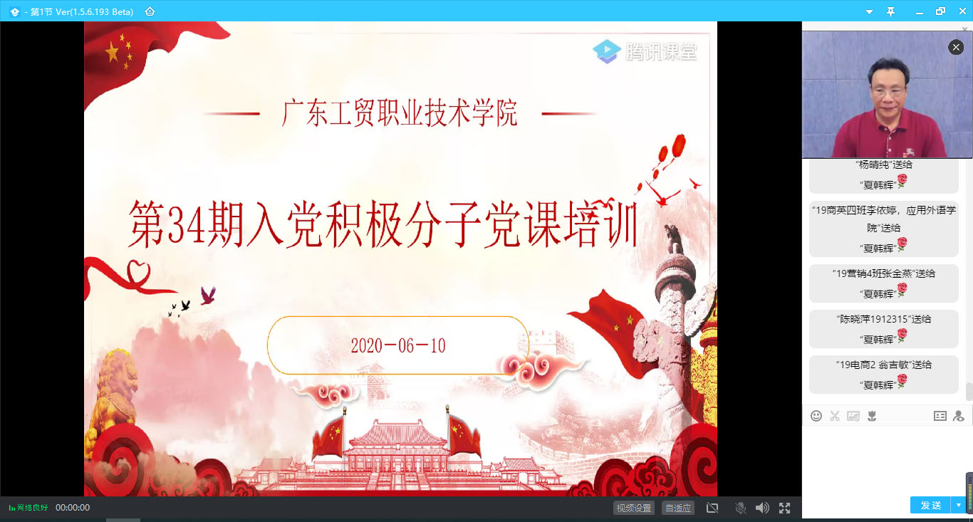 夏韩辉在天河校区综合楼演播厅为入党积极分子直播授课