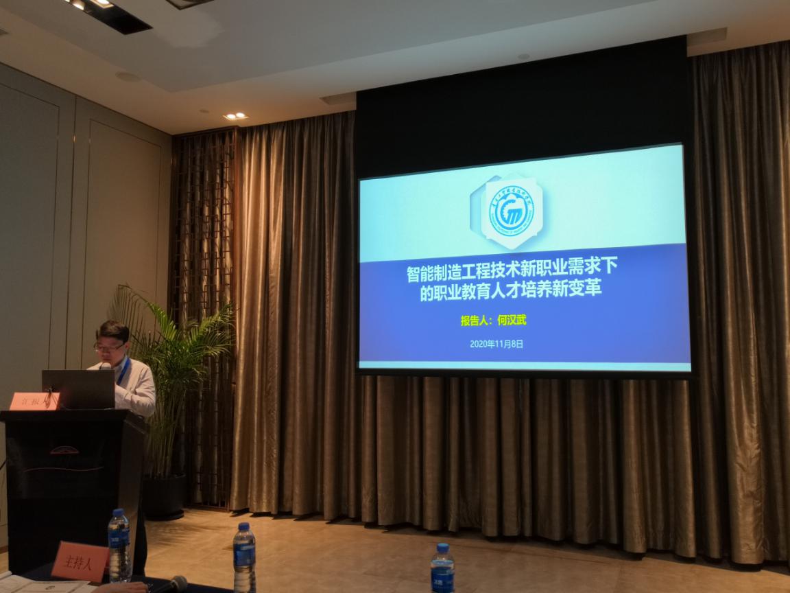 我校校长何汉武关于“智能制造工程技术新职业需求下的职业教育人才培养新变革”的报告,应邀由徐勇军在会议宣读。报告主要分析了智能制造工程技术人员新职业的工作任务、工作岗位和能力需求,从智能时代培养具有创新精神的工匠型人才的角度出发,提出了重构智能制造工程技术人才培养新常态的思路和对策。报告受到与会者广泛关注,并作了深入的学术交流。我校朱腾博士在会议上作了“基于边缘提取与多项式拟合的三维位姿解算方法”的报告。